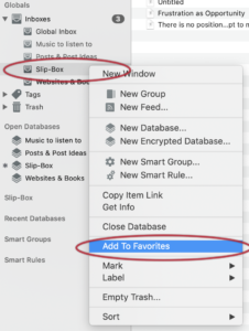 - Use the contextual menu (Command-click) to add the desired Inbox to your favorites: