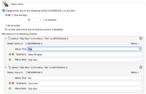However, there is no smooth process to get there by a key command. And golly-gosh-darn-it, I like my key commands. Let's create a method to open the desired Inbox a new window. We'll use our trusty Keyboard Maestro in this example, but you can use another custom keyboard program if desired as well.1