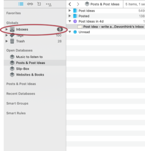 DEVONthink's Inbox is nicely set aside in the side bar: