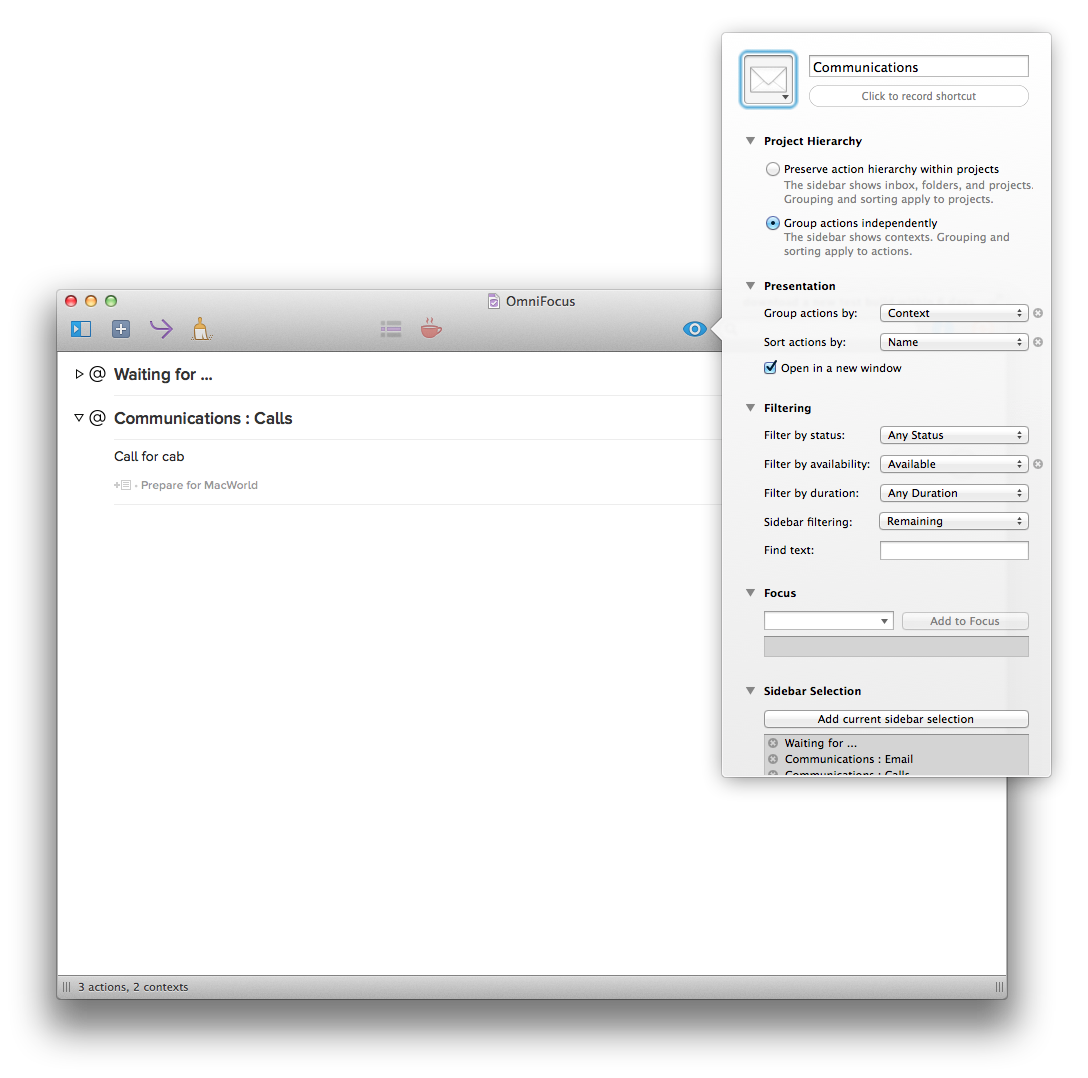 In particular, perspectives are a huge part of what make OmniFocus work for me. So, I’ve been keeping a close eye on their use in OF 2. So far so good, and there are indeed improvements.