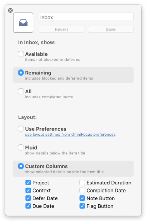 When I process the Inbox, I do so as a dedicated session. I would like to have all resources available. Therefore, I use a fuller set of the preferences to show all major components by opening the inspector (Option-Command-i) as well as having more components available inline: