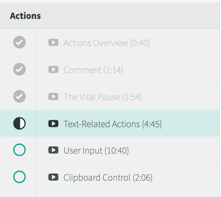 Then at the course, the videos are nicely lined up and marked complete when done: